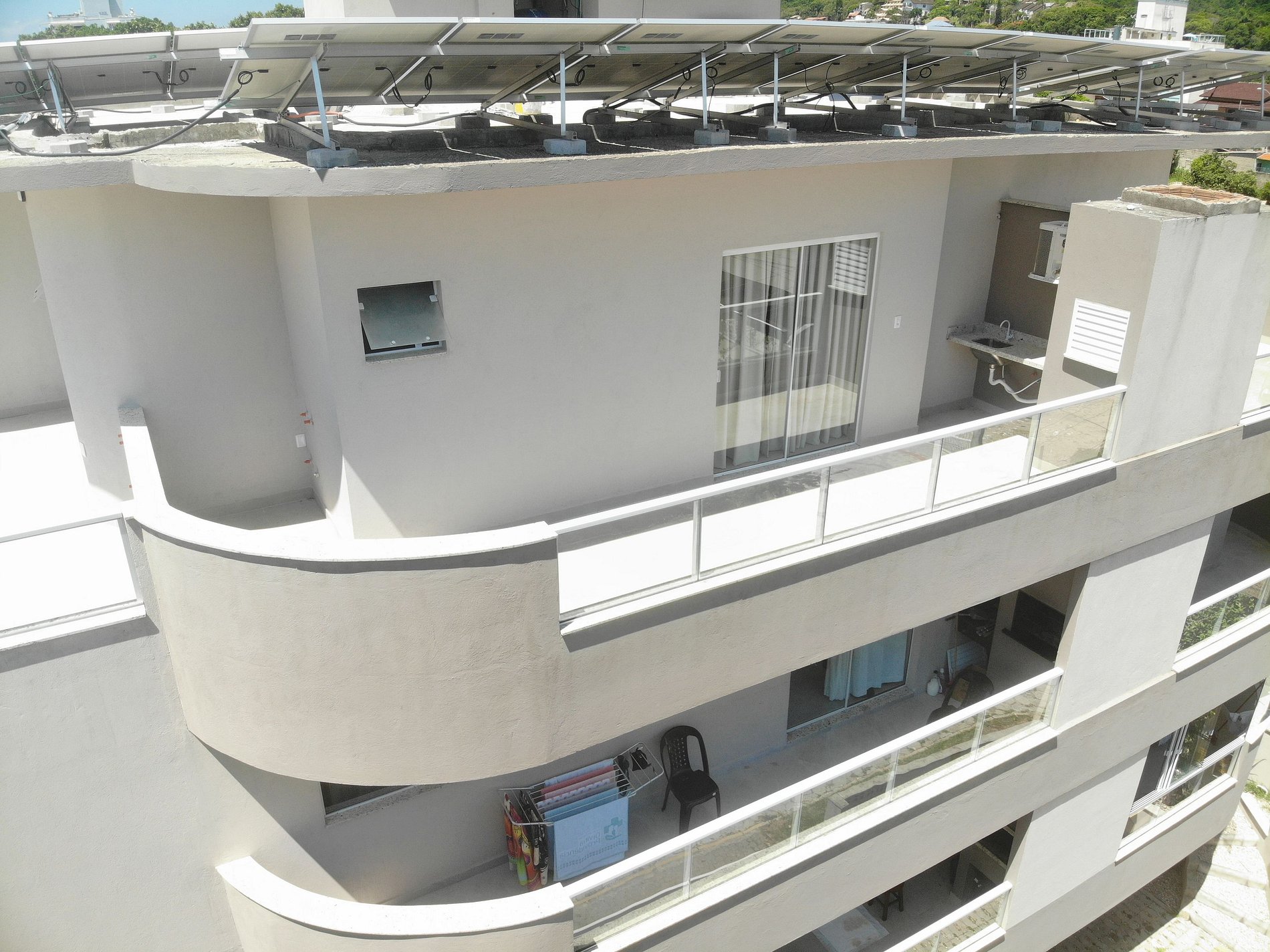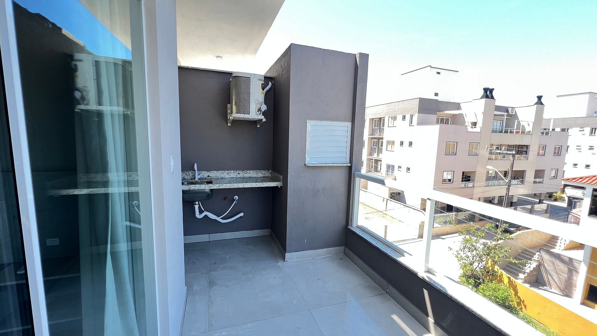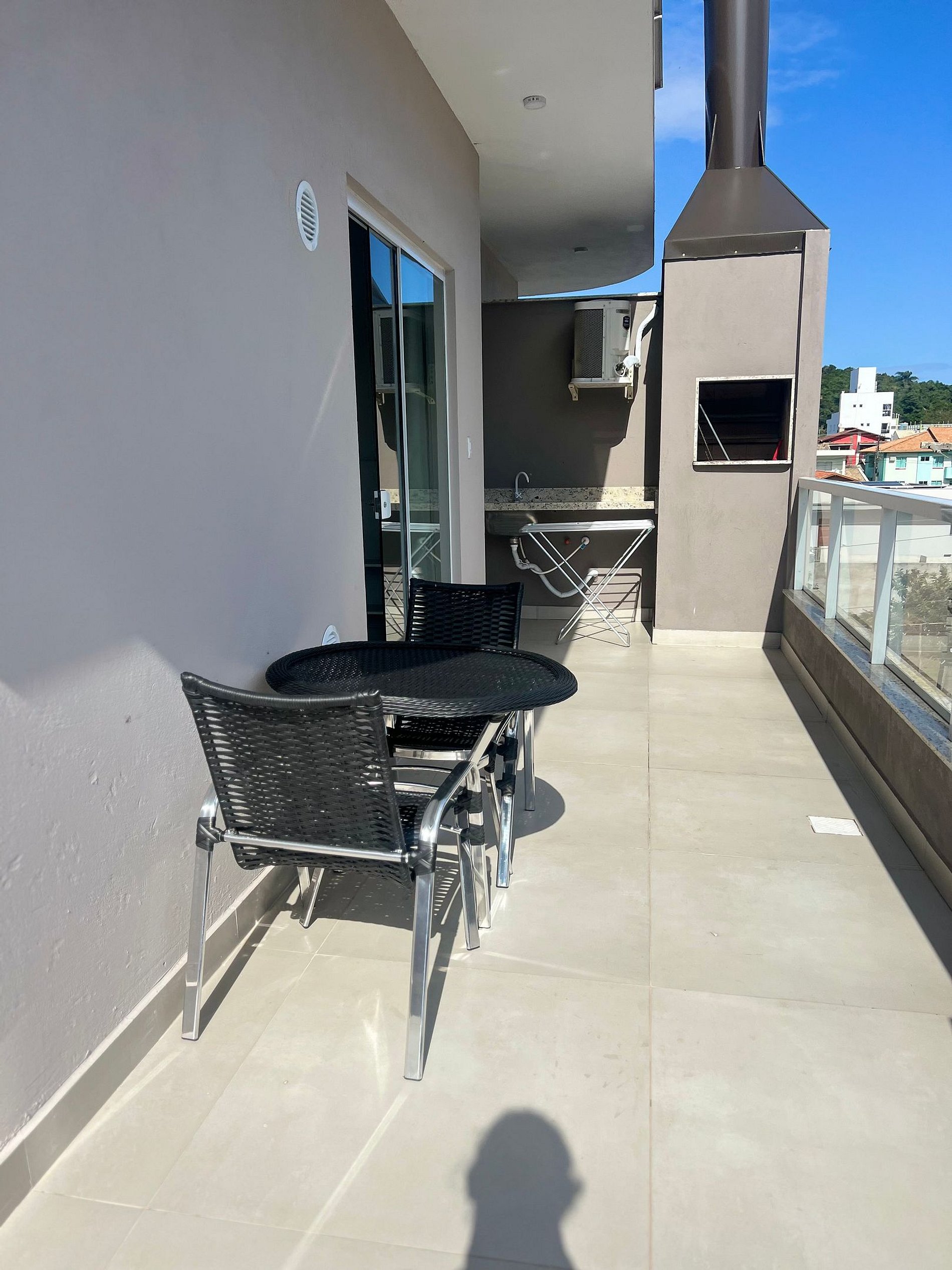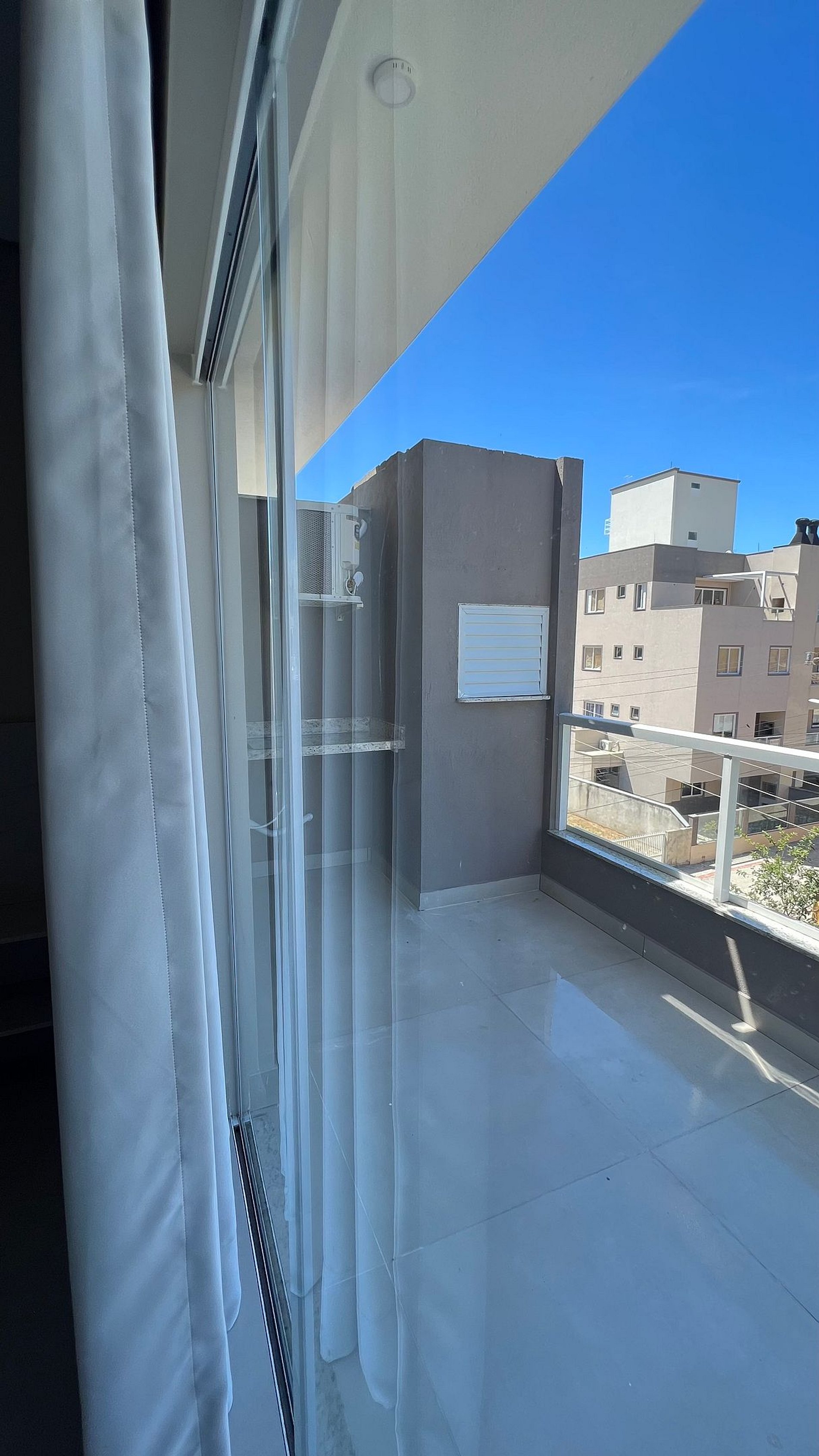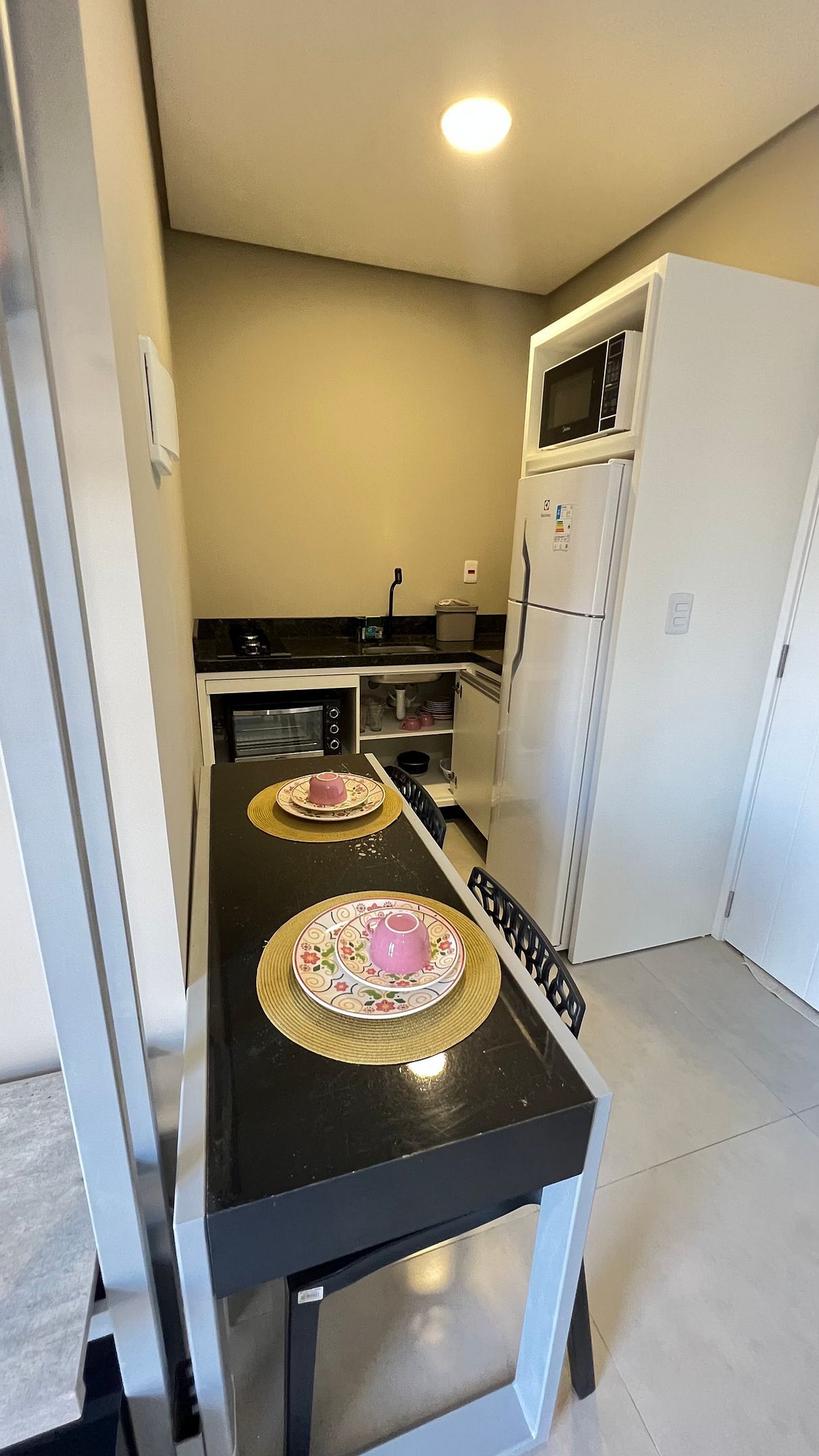 Apartamento para casal. A partir da porta de entrada, temos uma e cozinha a direita, e um dormitório com cama queen size e TV 32", a esquerda o acesso ao banheiro. Na saída do quarto para sacada, à esquerda, encontramos uma churrasqueira com uma pia/tanque. Por ser um apartamento com um só ambiente (exceto banheiro), um ar-condicionado atende a todo o apartamento.