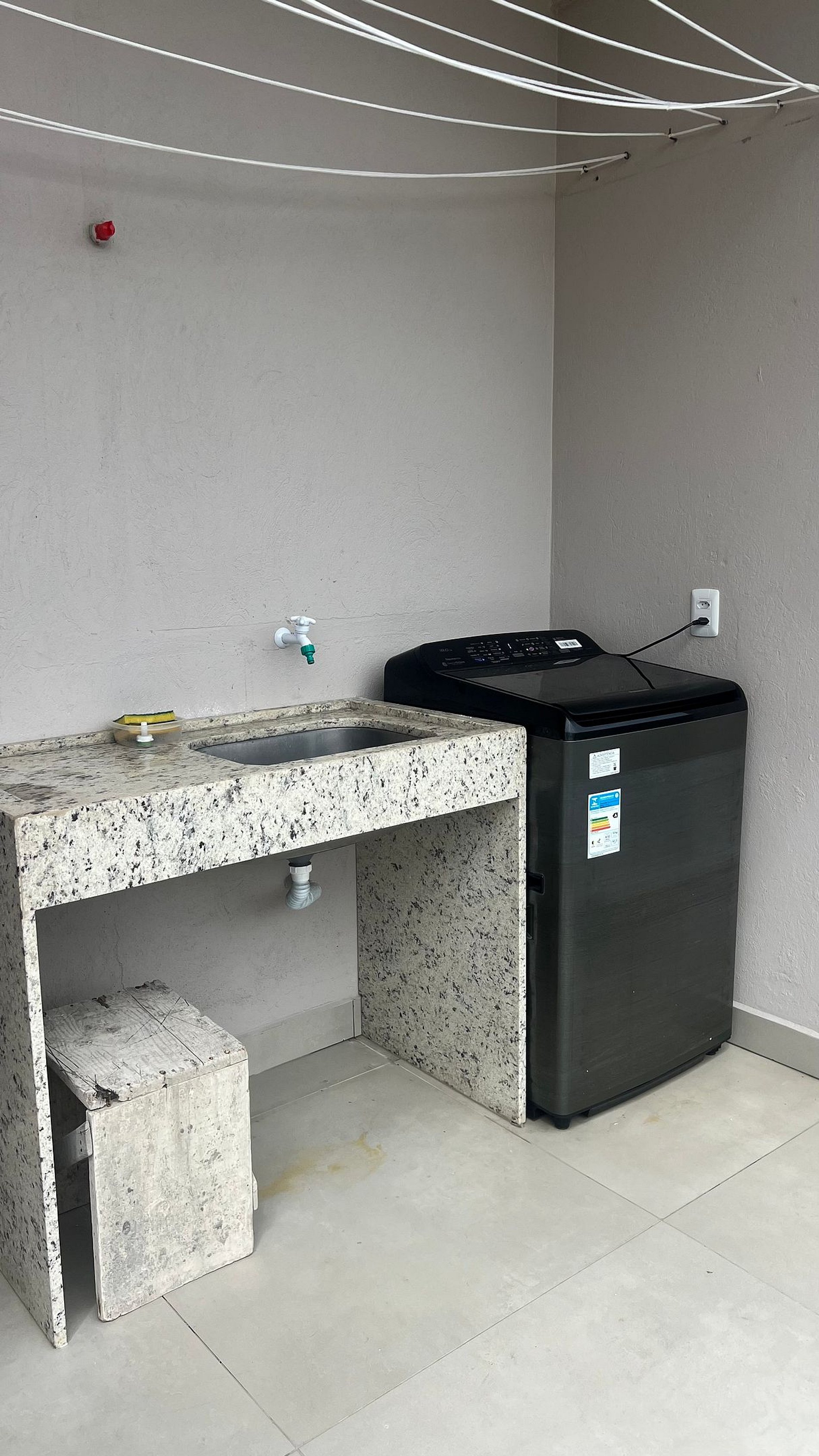 * Lavanderia compartilhada localizada na garagem, equipada com tanque e máquina de lavar roupas;