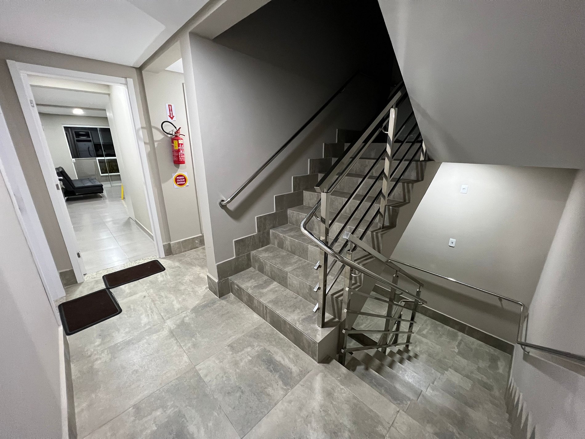 O acesso ao apartamento é feito através do hall de entrada com porta liberada por tag. É necessário subir dois lances de escada para chegar ao apartamento no Segundo Piso