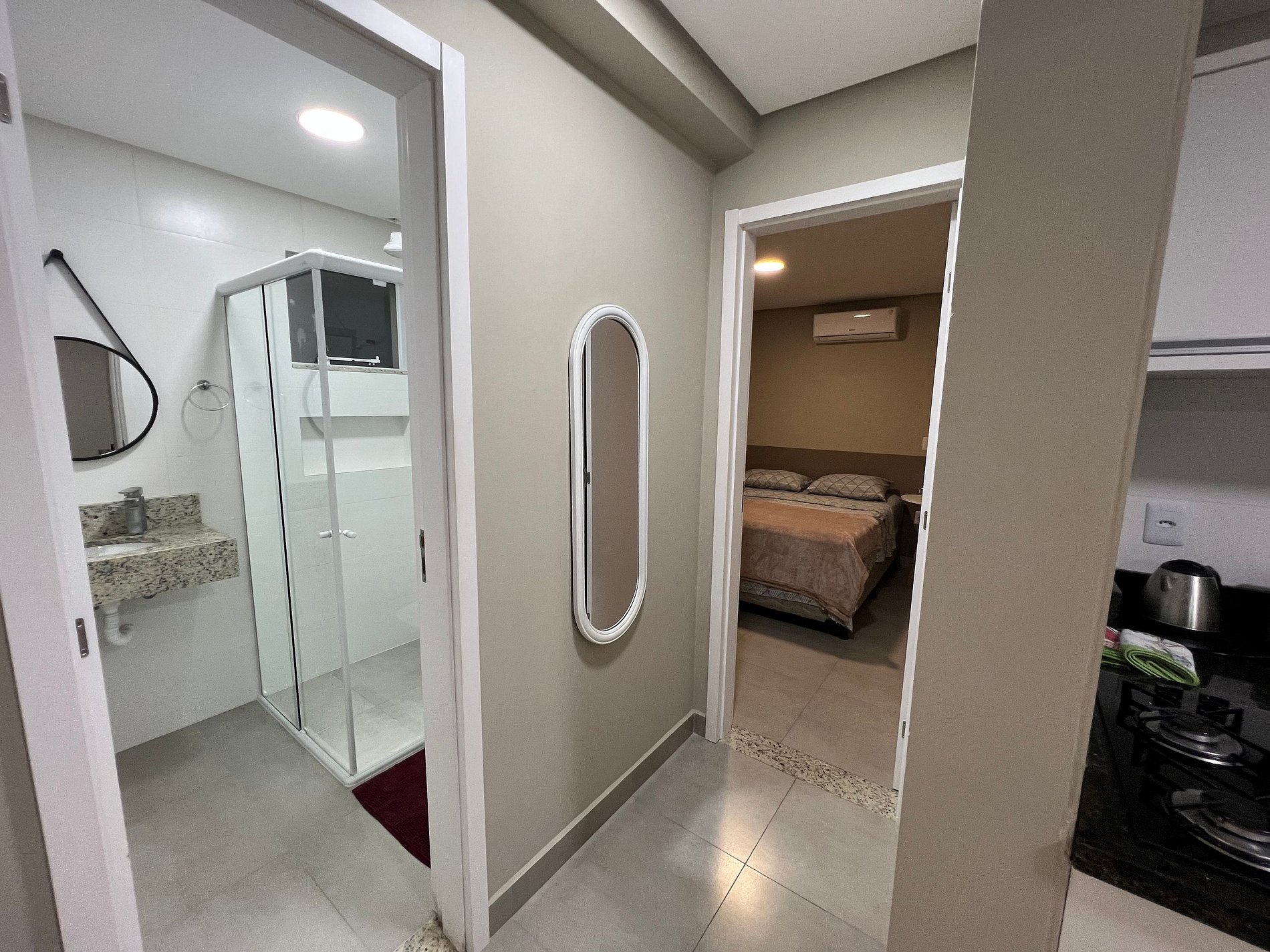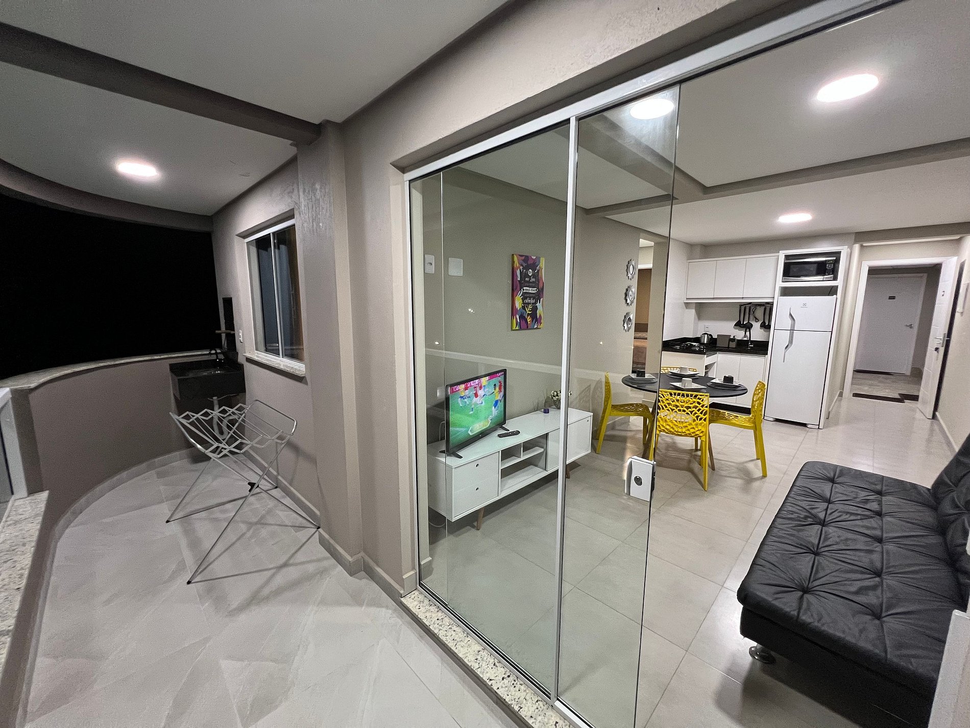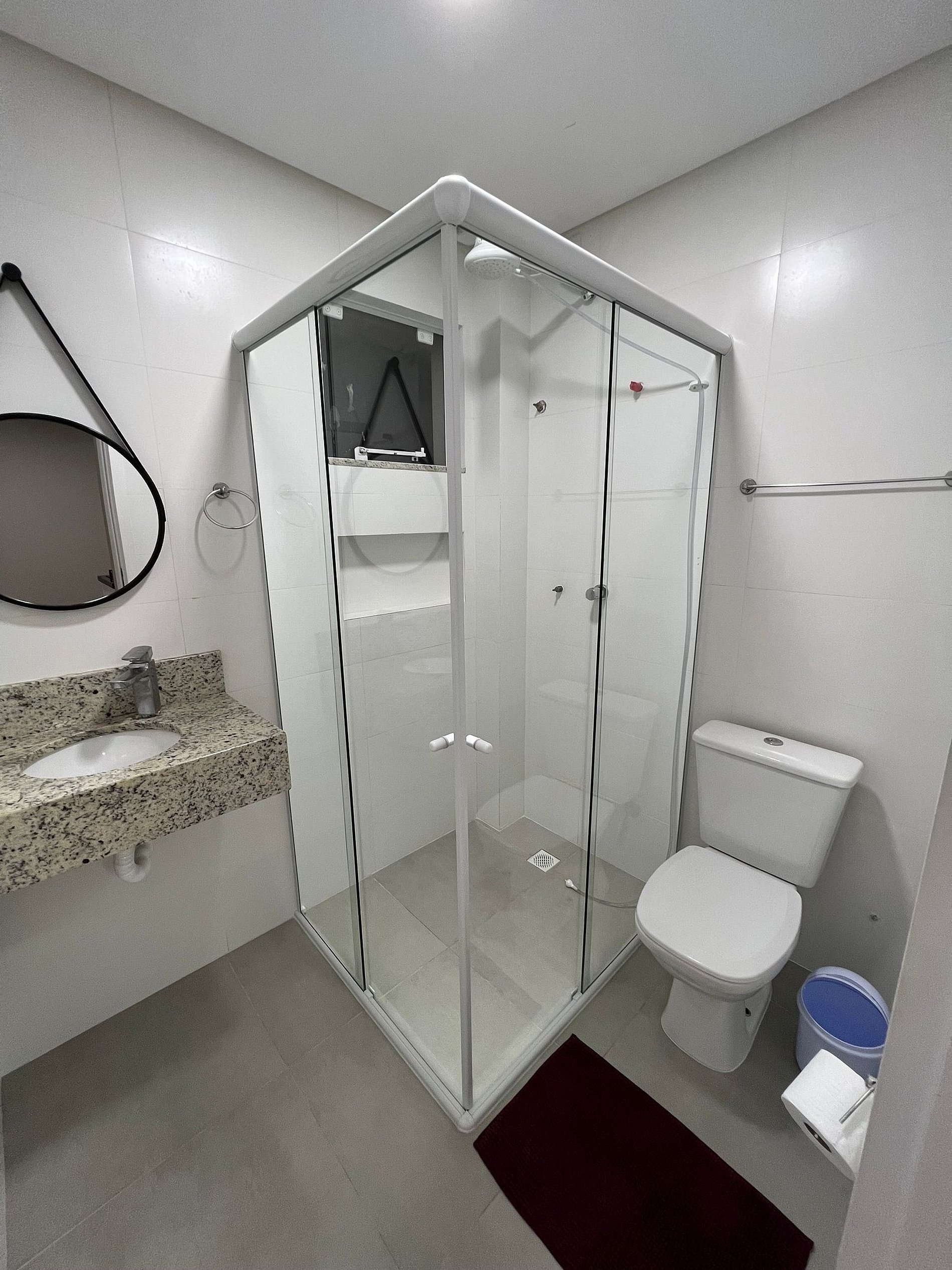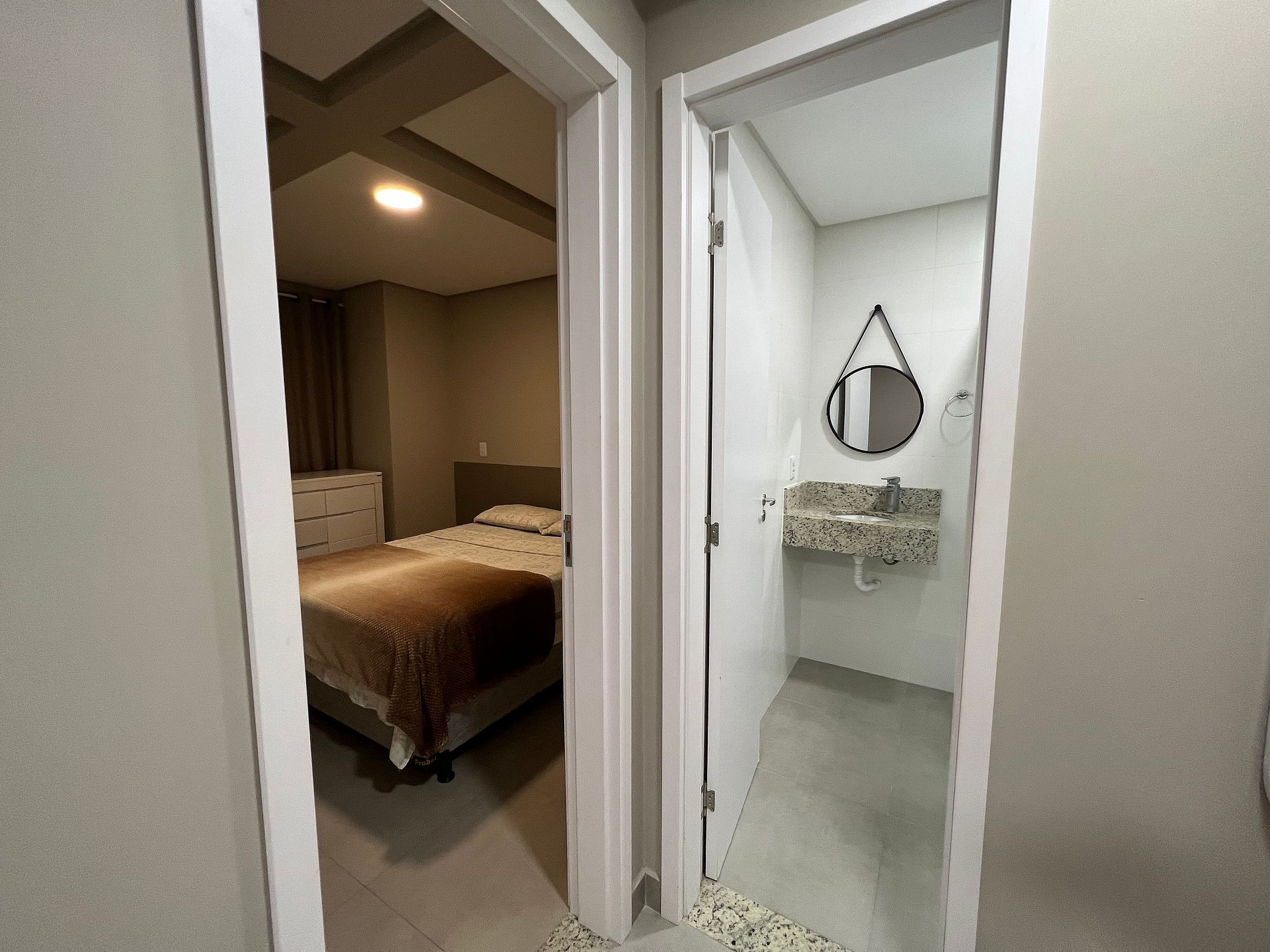 Apartamento ideal para 4 pessoas. A partir da porta de entrada para frente, temos a sala com um sofá-cama e Smart-TV 32" que, é conjugada com a cozinha formando um bom espaço para acomodar a todos, em seguida uma sacada com churrasqueira. A partir da cozinha para o lado direito, possui um corredor para um banheiro e dois dormitórios, um com cama queen size mais ar-condicionado e outro com cama para casal com ar condicionado.