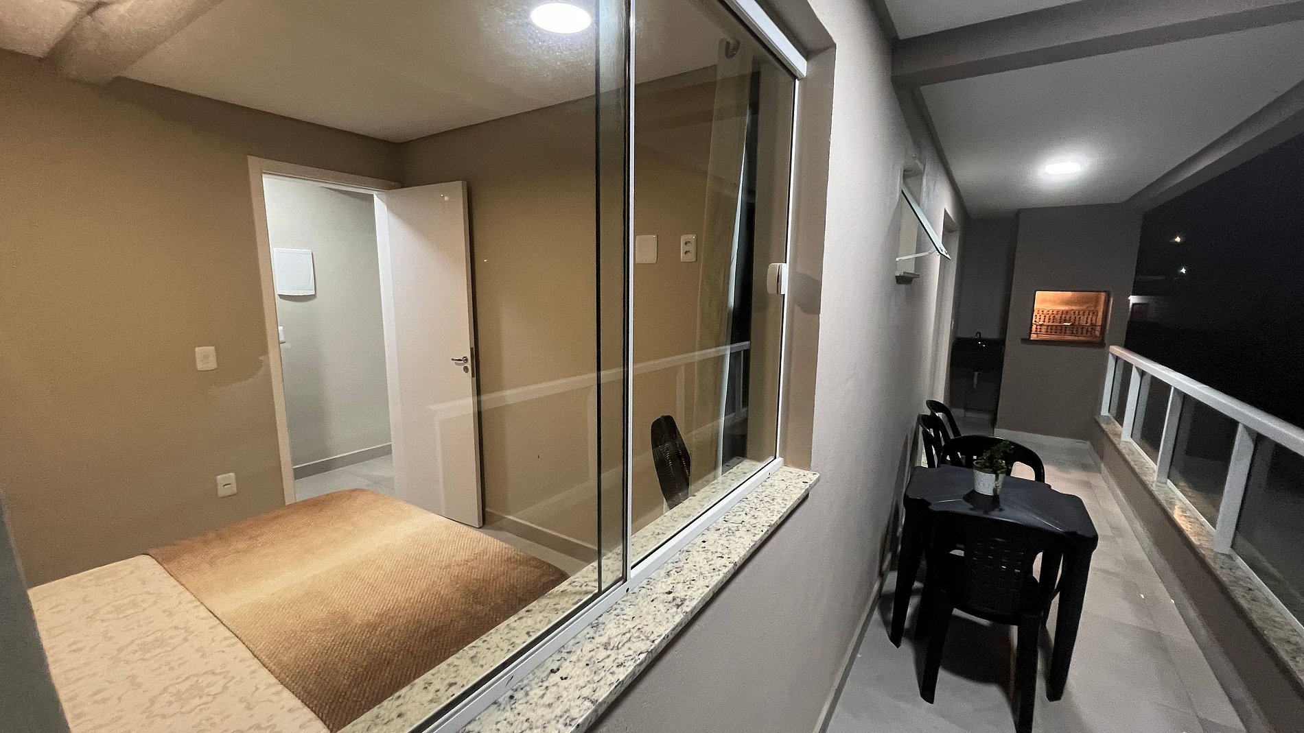 Apartamento ideal para 4 pessoas. A partir da porta de entrada para frente, temos a sala com um sofá-cama e Smart-TV 32", que é conjugada com a cozinha formando um bom espaço para acomodar a todos, em seguida, tem uma sacada com churrasqueira. A partir da porta para o lado direito, possui um banheiro e dois dormitórios, um com cama queen size mais ar-condicionado e outro com cama para casal com ar condicionado É necessário subir dois lances de escada, porque está no segundo andar, sem elevador.
