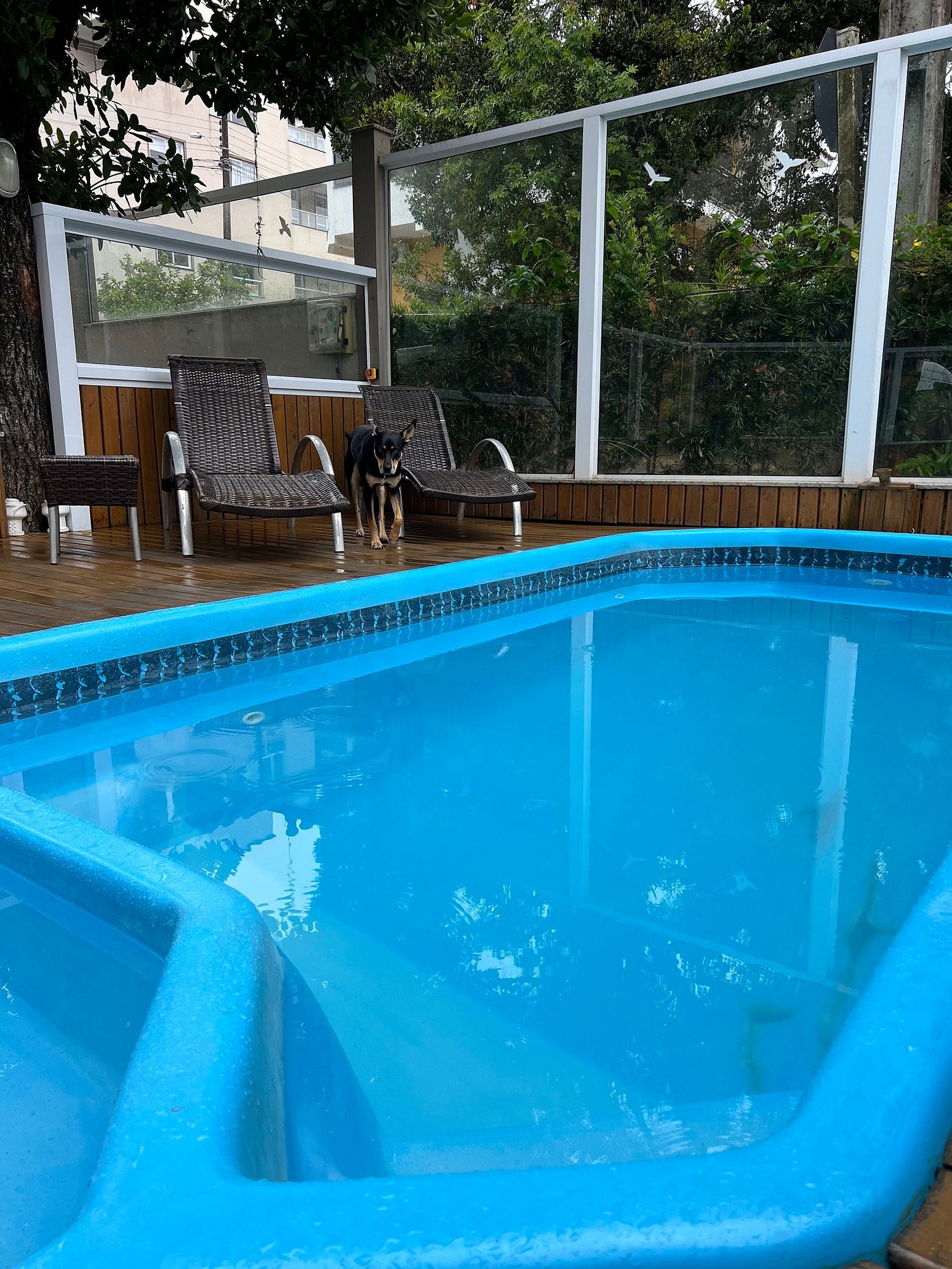 * Lavabo compartilhado localizado na garagem para facilitar o uso da piscina;